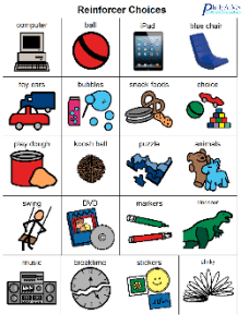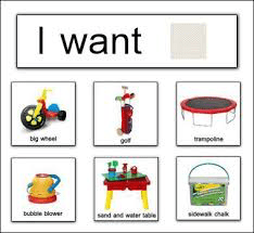 DESCRIPTION/TIPS: Helps a person learn to identify items that are meaningful to them. Always place a choice board near where the objects are ( for example food choices should be in the kitchen.) Start off by using icons for one thing they want or like and a blank icon to make sure they are learning to tell the difference. Also, don’t offer a picture of something (icon or PECS) if you don’t have it, that’s just too frustrating! When you start out, you may want these icons to be larger and as time goes by they may get smaller.