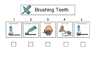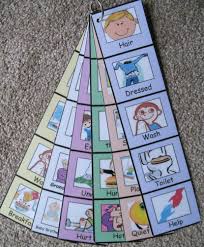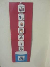 DESCRIPTION/TIPS: This is a way to help a person feel more in control about what’s expected of them and follow along by seeing what is happening next. It can be for a large event such as the school day or a small task broken into parts like washing your hands. Visual schedules can help when there is a change in routine and they can also help a person know when activities are finished.