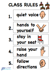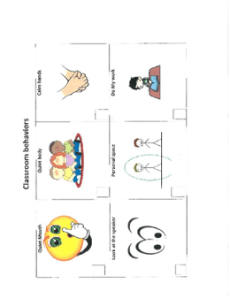 DESCRIPTION/TIPS: These are ways for people to understand what the “rules” are and to follow them more easily. Expectations can be used at home or school but it can take practice to help a person understand what these rules are; people are more successful when you add praise, reinforcements and rewards for following the rules. Remember to use rewards that are meaningful to that person or they may not be motivated to follow along.
